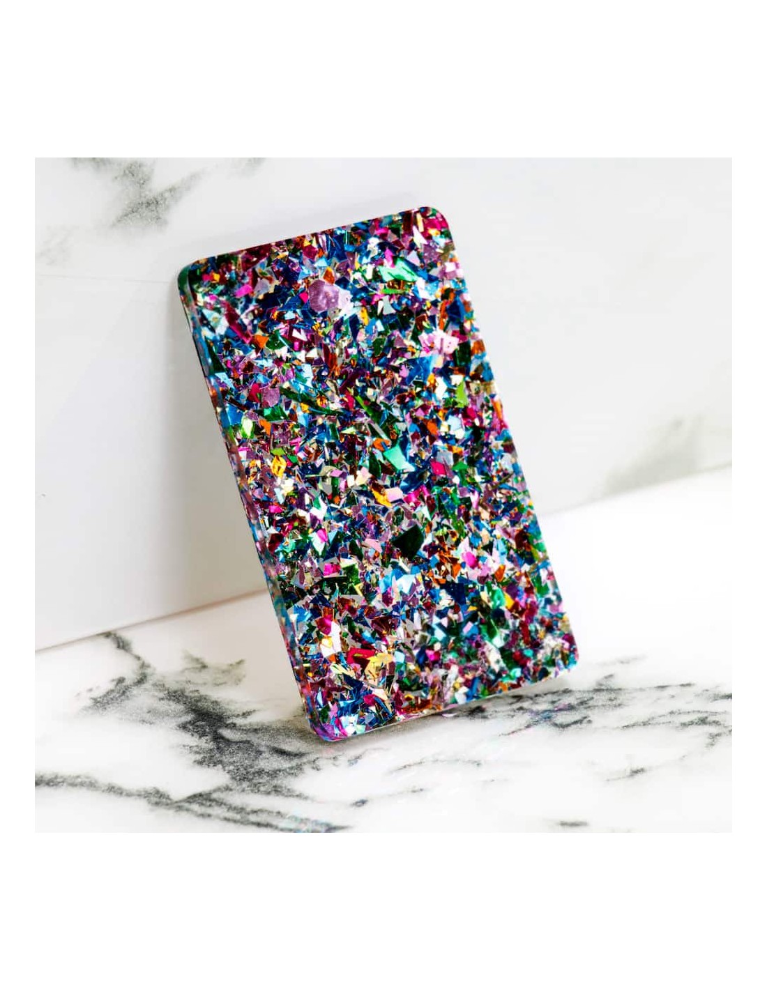Descobreix la màgia de les nostres planxes de metacrilat Fantasia Flakes, que t’oferim en diferents colors i mides, dissenyades per aportar un toc únic als teus projectes de bricolatge, decoració de festes, casaments, aniversaris, bijuteria i molt més. Aquestes planxes porten flocs de colors incrustats al seu interior, fet que les converteix en una opció perfecta per a un gran nombre d’aplicacions.